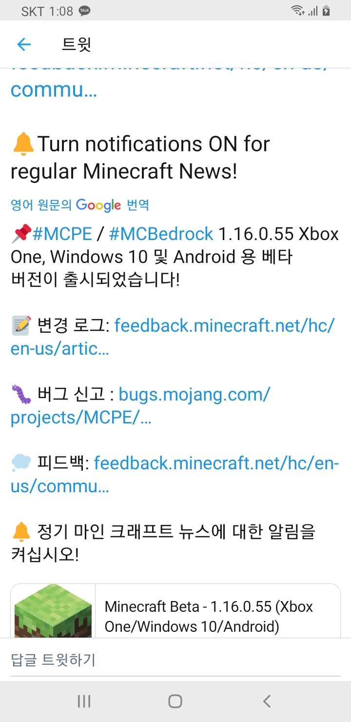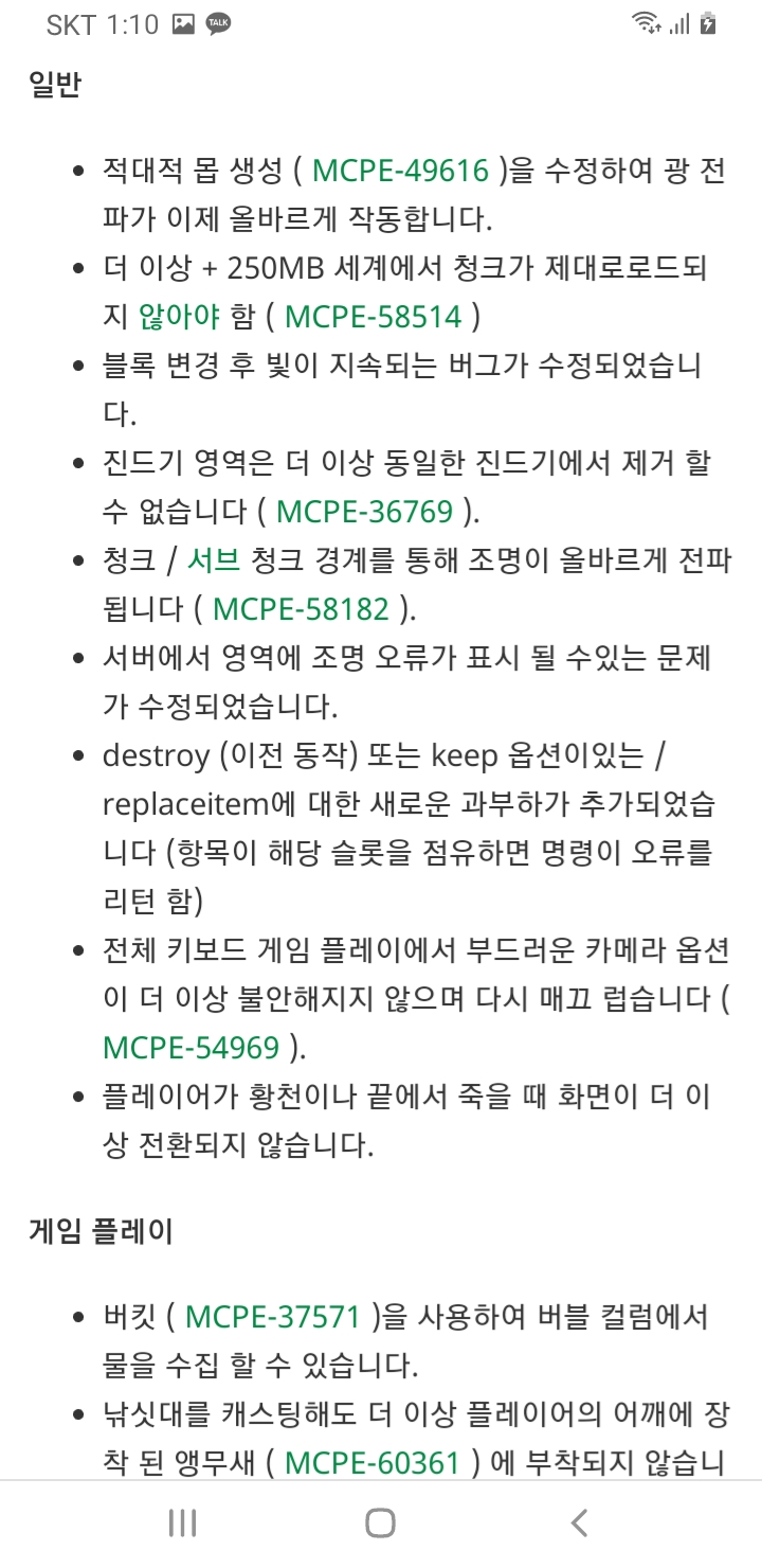 마인크래프트 업데이트소식