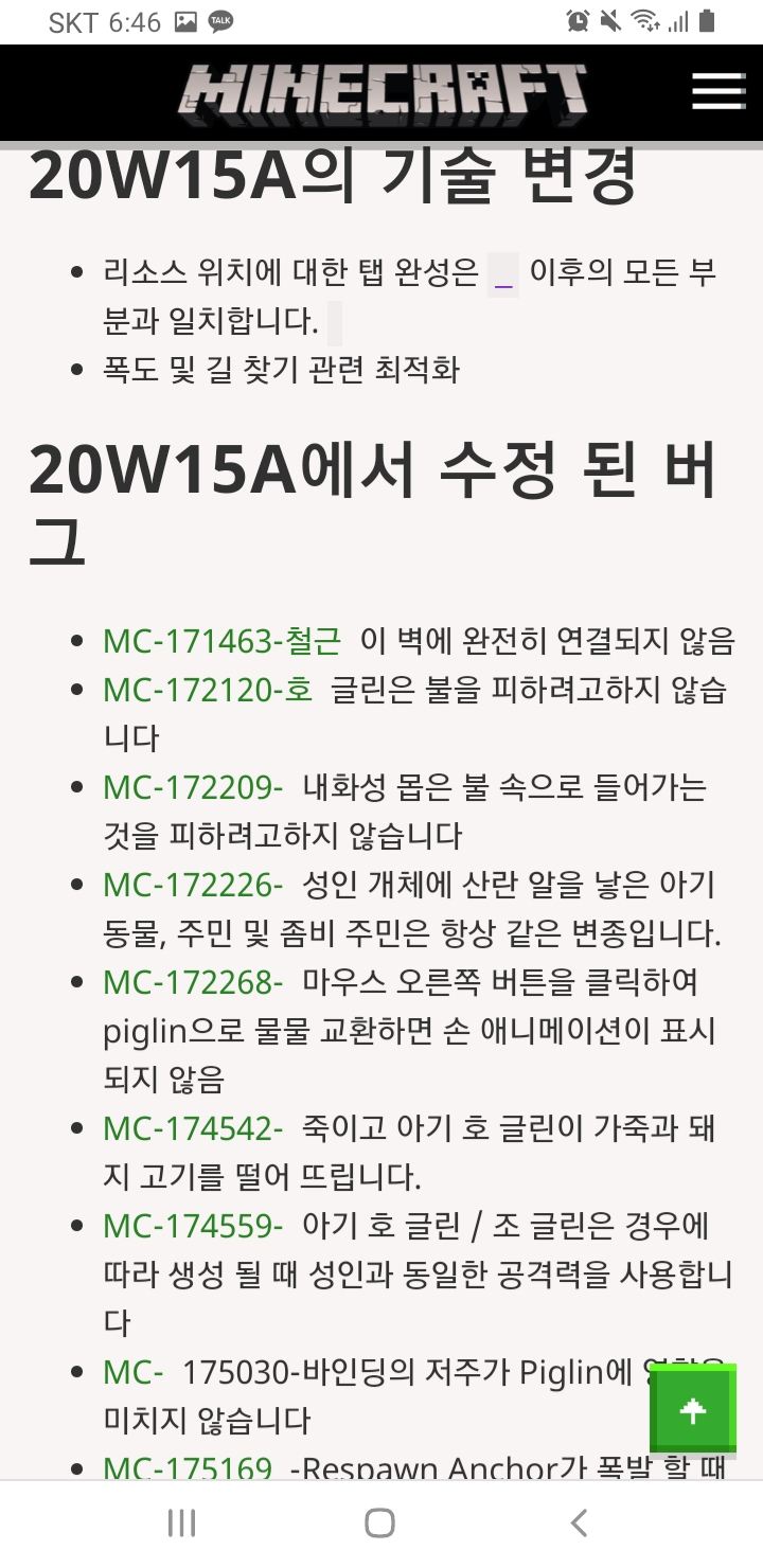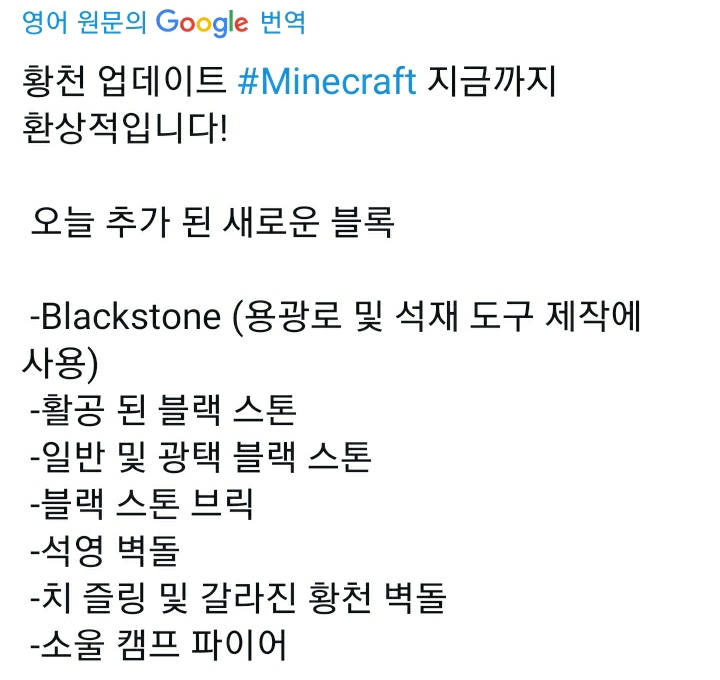 마인크래프트 업데이트소식