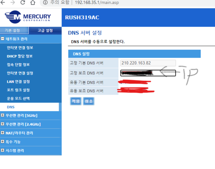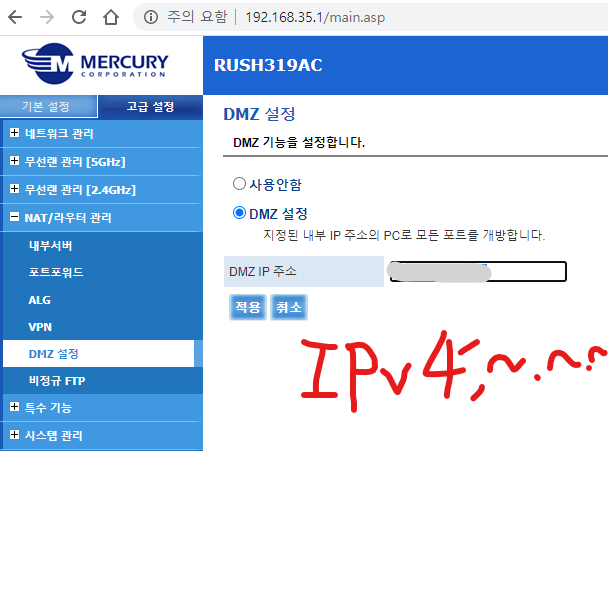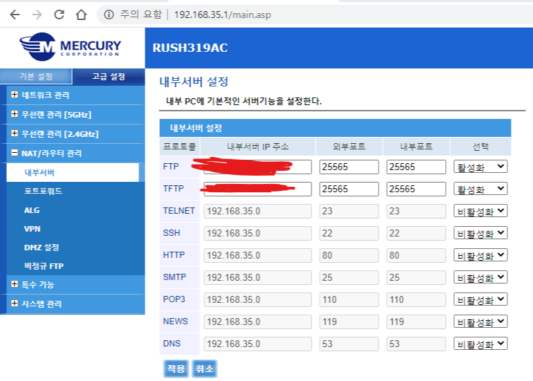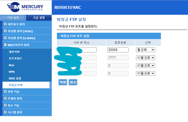 파란색 IPv4주소를 비정규FTP서버주소에 복붙하고 적용을 눌러주세요!