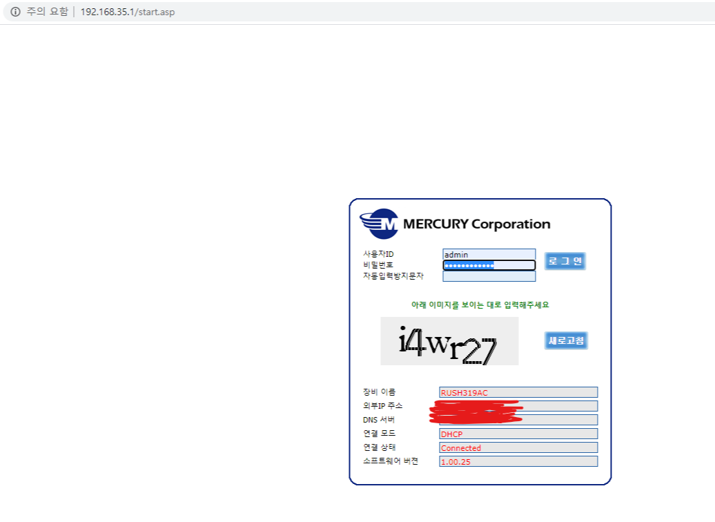 먼저 사용자 ID는 admin입니다. 아이피는 192.168.35.1입니다.