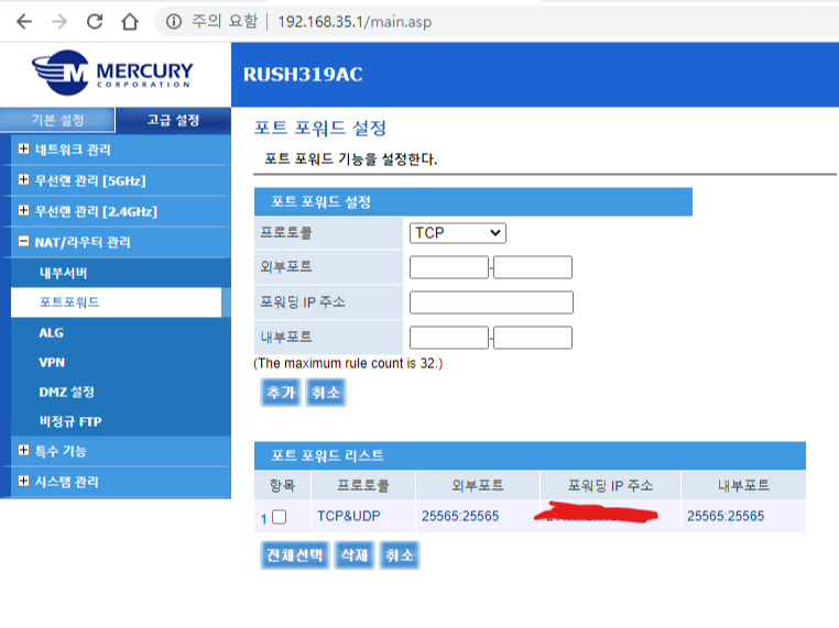 1.마인크래프트: 공유기 설정(포트포워딩 공유기설정)