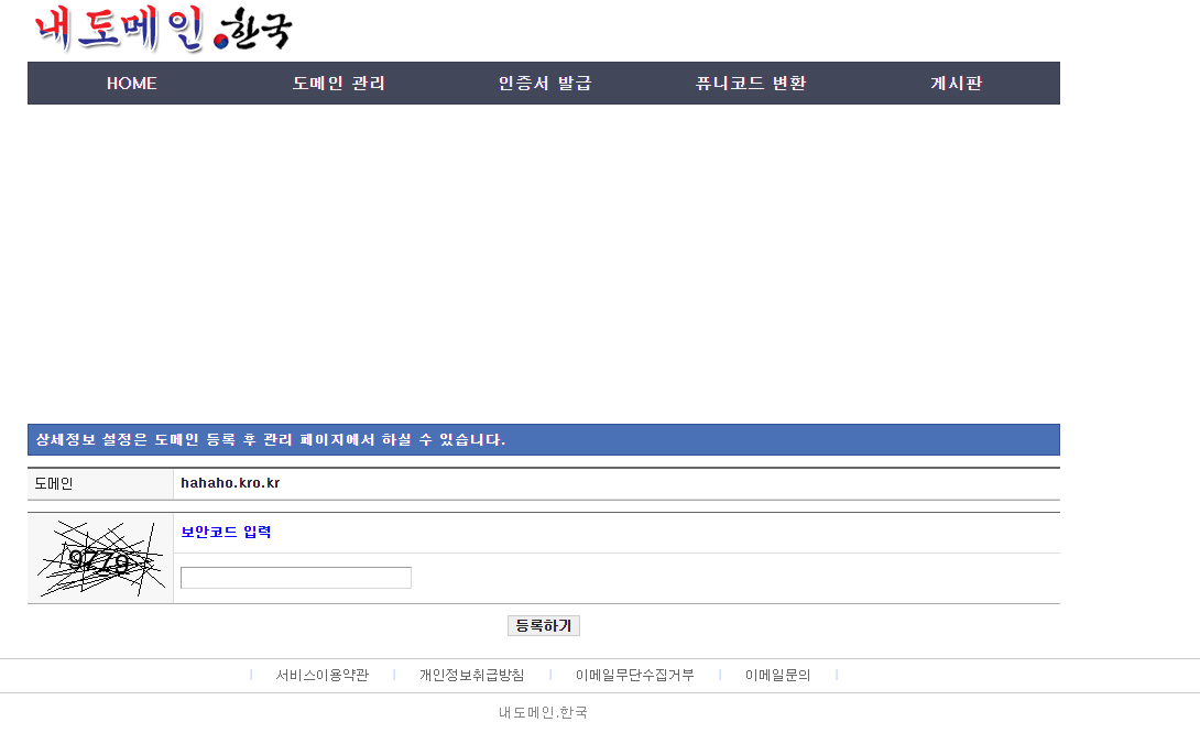 일반도메인의 예시: hahaho.kro.kr이라면 한글 도메인의 예시:하하호.온라인.한국 이런식으로 셋팅됩니다. 도메인 등록은 매우 간편하게 할 수 있는게 장점이죠.