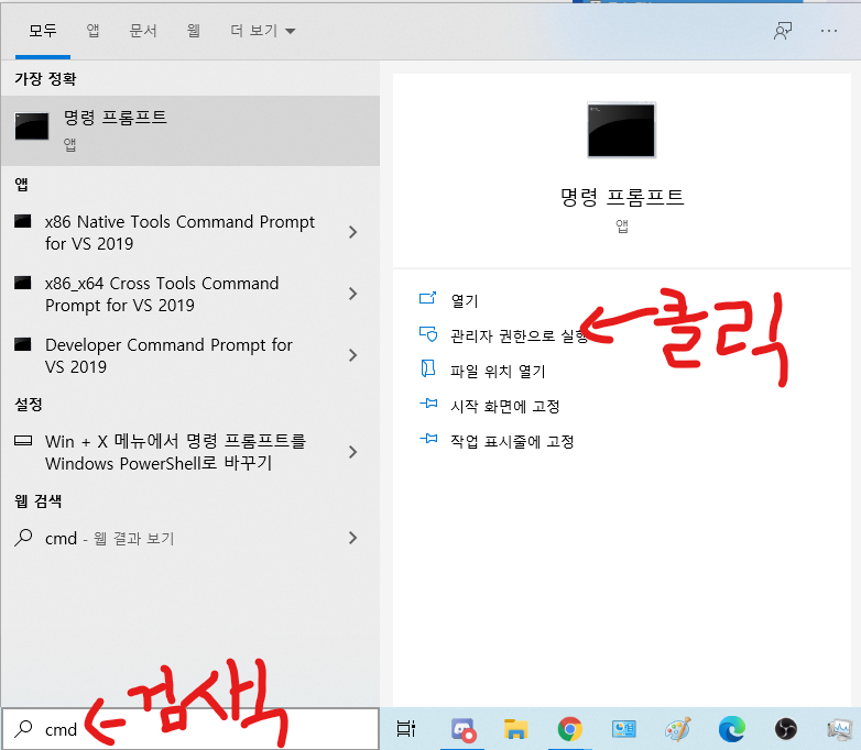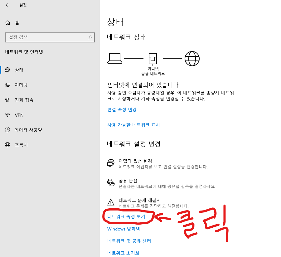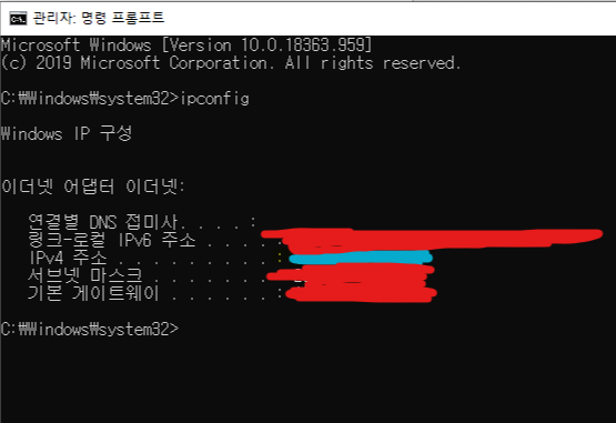 여기는 cmd를 관리자권한으로 켜서 ipconfig을 치시는 방법이 있고 윈도우설정에서 볼 수도 있습니다.