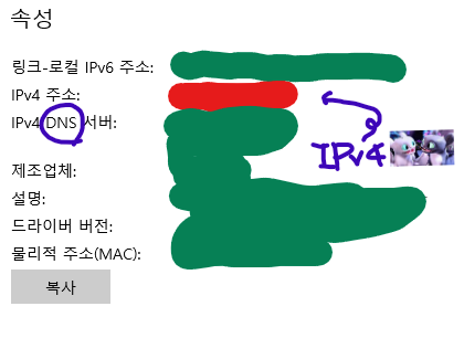 보시면 왼쪽에 사진의 있는 IPv4부분의 숫자인 아이피를 오른쪽 IP연결 A부분의 붙여넣기를 하시고 보안코드를 작성하고 수정하기를 누른후에 나오시면됩니다. 그리고 도메인 아이디나 비번은 기억하는게 되도록이면 좋습니다. 또한 비밀번호 저장기능을 통해서 확인하셔도됩니다. 수정하기를 누른후에 인터넷 창을 닫습니다.