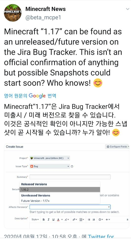 마인크래프트 미출시 버전 1.17이 미래버전으로 곧 공개됩니다. 저는 개인적으로 pvp개발버전이 있었으면 좋겠네요..