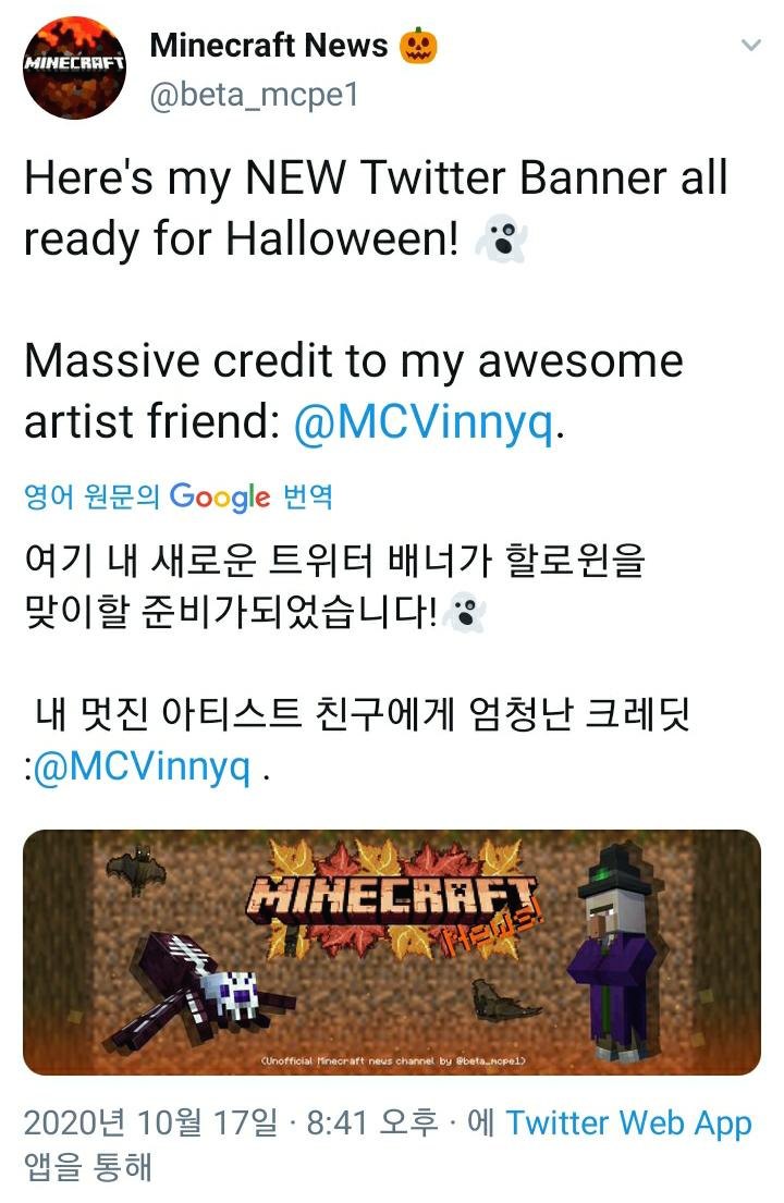 마인크래프트 BE로 추정되는 배경화면입니다. 아마도 10월31일 배너업데이트까지는 아니고 마켓플레이스에서 리소스팩같은걸 배포하지않을까 생각이 듭니다. 할로윈을 맞을 준비가 되었다는 것을 보아 JE처럼 크리스마스 이벤트를 할 것같습니다.