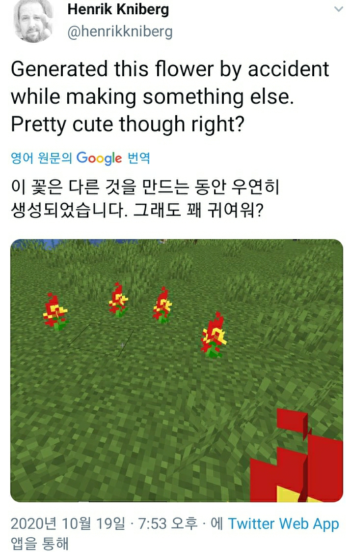 마인크래프트에서 개발자한분이 양초를 만들려고 민들레의 소스로 개발하던중 민들레가 불타는 블럭을 만들었습니다. 아마도 양초의 베이스는 민들레로 만든거같습니다.