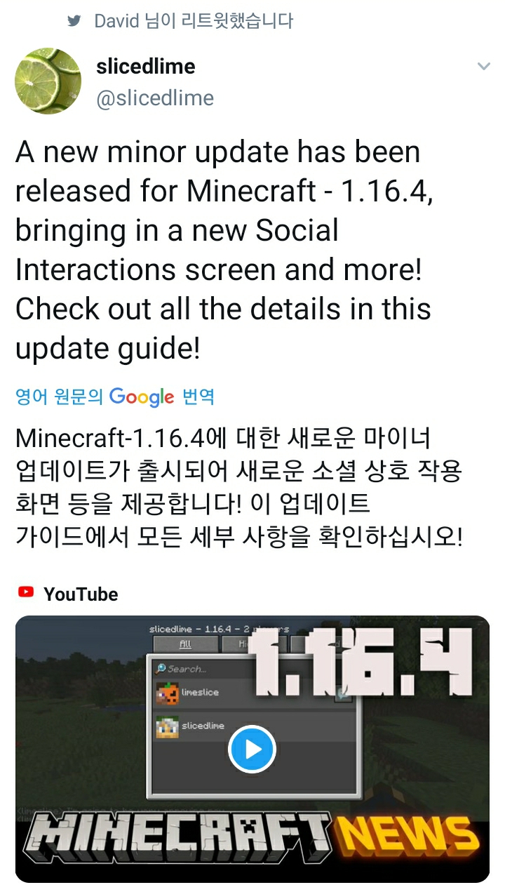 마인크래프트 1.16.4 베드락에디션에서 마이너업데이트로 새로운 화면제공과 새로운 소셜 상호작용화면을 제공한다고합니다.