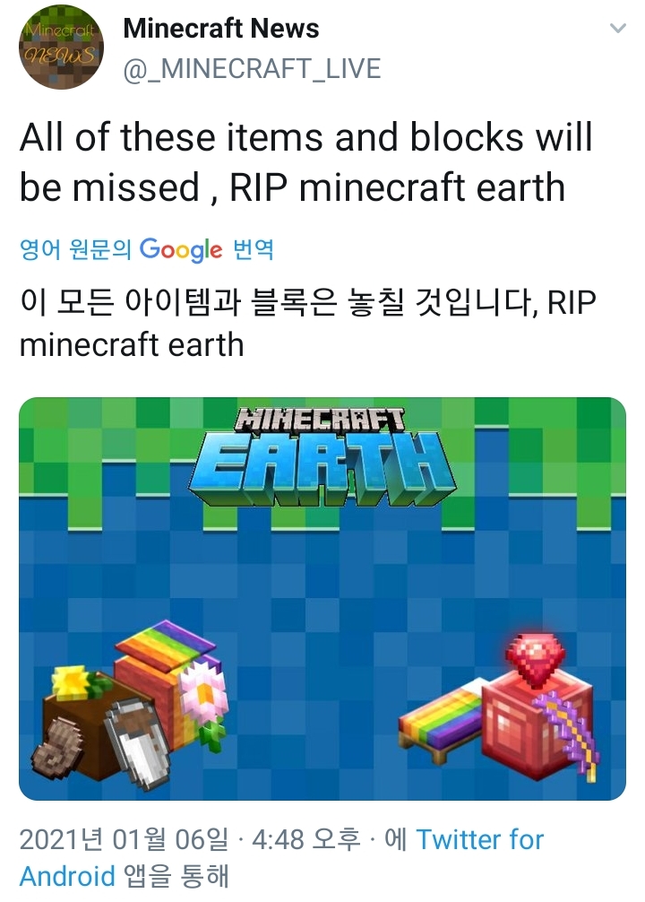첫번째 소식입니다. 마인크래프트 어스가 서비스종료를 선언했습니다.