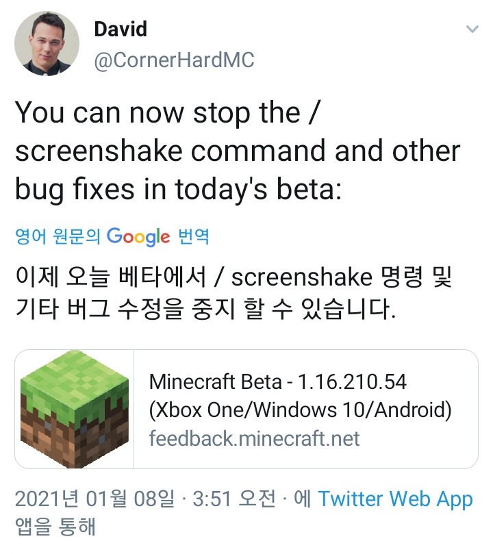 마인크래프트BE가 1.16.210.54버전이 베타버전으로 업데이트되었습니다.