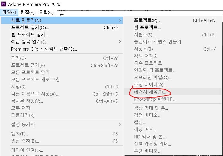 그리고 파일에가서 새로만들기에서 "레거시제목"이 있는데 이걸 클릭해줍니다.