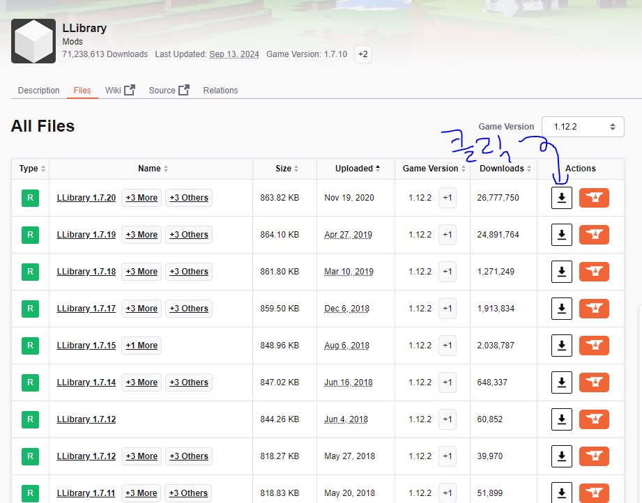 계속하자면 고고학모드 1.12.2버전의 고고학모드8.0.6버전을 다운받으려면 LLibrary모드도 다운받아야합니다. 저희는 1.12.2버전에 맞는 버전으로 다운받으면됩니다. LLibrary - 모드 - Minecraft - CurseForge클릭