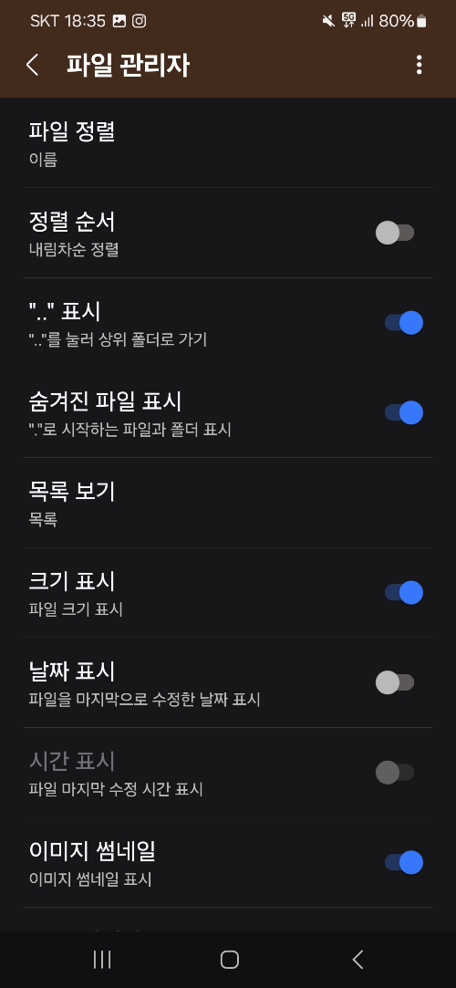 마인크래프트 모드를 설치하기 전에, 먼저 플레이스토어에서 ZArchiver를 설치하세요. 설치가 완료되면 ZArchiver를 열고, 상단의 세 개의 점을 클릭한 다음 '숨겨진 파일 표시'로 이동하여 숨겨진 파일을 '꺼짐'에서 '켜짐'으로 변경하세요.