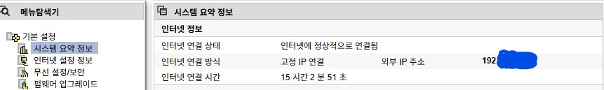 여기서 내부 아이피주소는? 앞에 고정아이피 설정한 아이피입니다.
