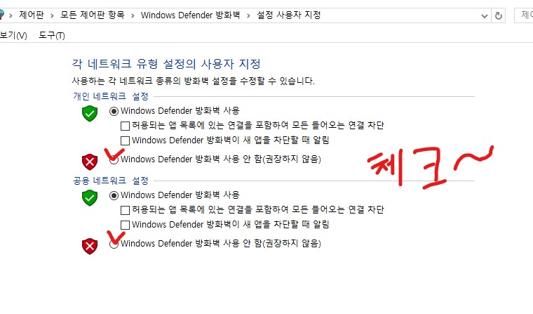 이러면 아이피타임과 sk브로드밴드의 공유기는 포워딩된 상태입니다. 여기서 방화벽도 해제해줍니다.