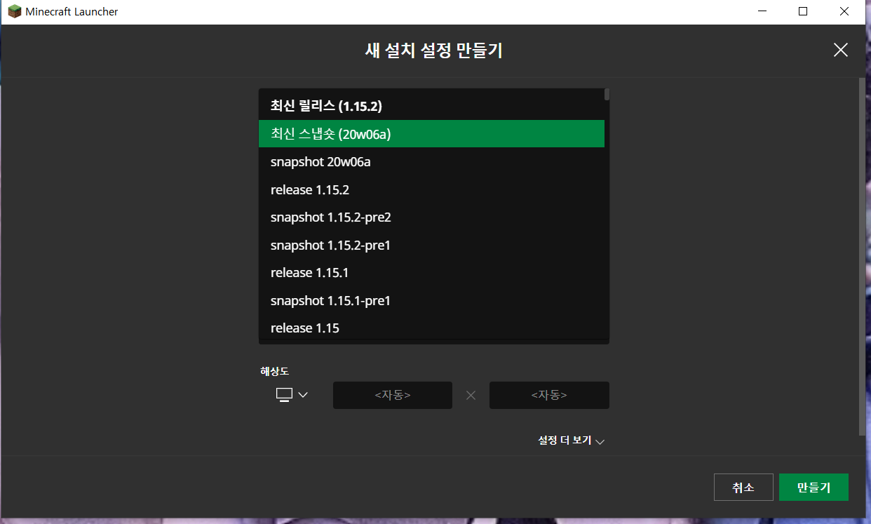 오늘 새벽 20w06a가 나왔습니다 밑에 런처를 보시면 저는 정품런처이고 최신스냅샷이 출시되었습니다 이미 유튜브에도 많이 노출되었으나 저도 열심히 트윗에나온거 조사해서 했기때문에 글을 씁니다
