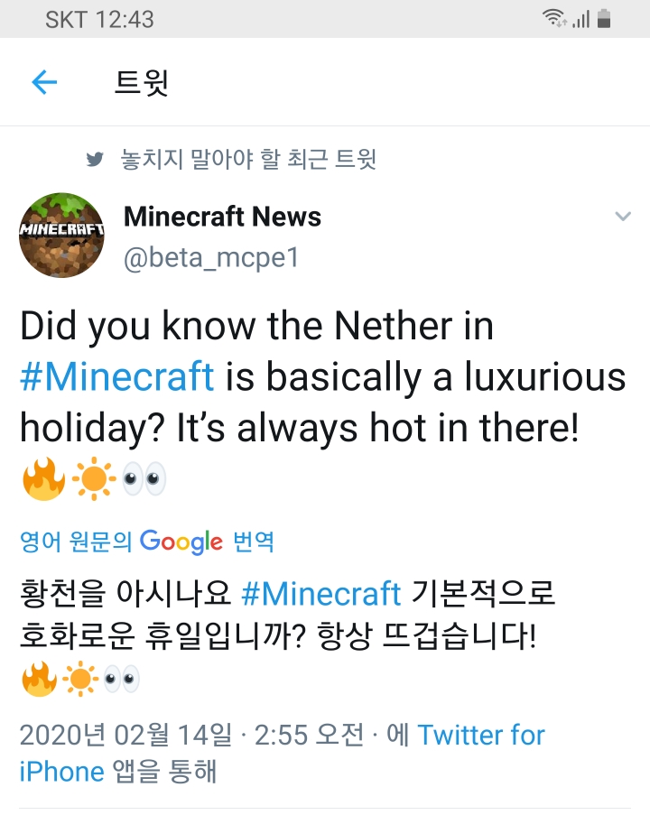 마인크래프트 최신소식 2020/02/16