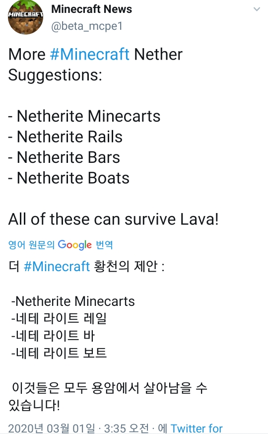 마인크래프트 네더 업데이트 유출 소식! 및 마인크래프트 베드락업데이트 네더 업데이트 시작?