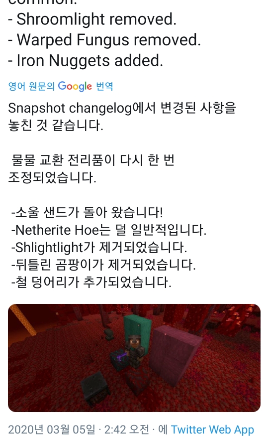 마인크래프트 1.16 스냅샷!!!!업데이트 소식
